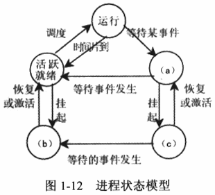 某系统进程的状态包括运行状态、活跃就绪状态、静止就绪状态、活跃阻塞状态和静止阻塞状态。针对图1-12所示的进程状态模型,为了确保进程调度的正常工作,(a)、(b)和(c)的状态分别为()