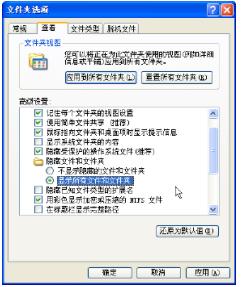 如果这两个文件没有显示, 依次打开“我的电脑”、“查看” 或“工具” 菜单、“文件夹选项” 、“查看”, 选择“显示所有文件”, 去掉“隐藏已知文件类型的扩展名”。 见下图: