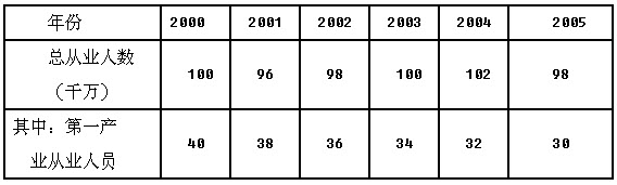 我国2000-2005年总从业人员和第一产业从业人员(年度数)如下,则我国2000-2005年第一产业从业人数占总从业人数的比重的年平均数为()。