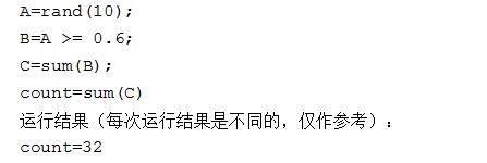 利用rand函数产生(0,1)间的均匀分布的10*10随机矩阵A,然后统计A中大于等于0.6的元素的个数。
