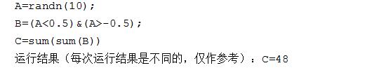 利用randn函数产生均值为0,方差为1的10*10随机矩阵A,然后统计A中大于-0.5且小于0.5的元素的个数。