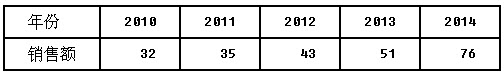 某商品2010-2014年销售额(单位:万元)如下,该商品2010-2014年销售额的平均增长量为()万元。