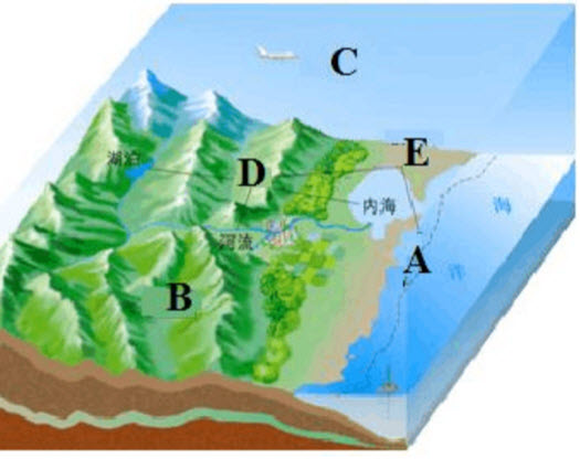国家领土是国家形式主权的空间,领土包括领陆、领水和领空。下图中的A表示的是()