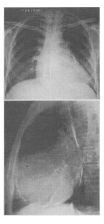 患者,男,34岁,心悸、腹胀,胸片如图,最可能的诊断是()。