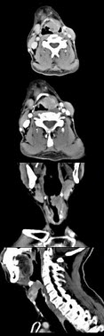 男,53岁,咽部不适半年余,近2个月感咽部疼痛,声嘶,CT如图所示,应诊断为()