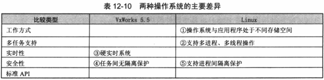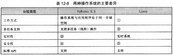 在TLS软件架构的基础上,关于选择哪种类型的嵌入式操作系统问题,李工与总工程师发生了严重分歧。李工认为,宇航系统是实时系统,操作系统的处理时间越快越好,隔离意味着以时间作代价,没有必要,建议选择类似于VxWorks5.5的操作系统;总工程师认为,应用软件间隔离是宇航系统安全性要求,宇航系统在选择操作系统时必须考虑这一点,建议选择类似于Linux的操作系统。 请说明两种操作系统的主要差异,完成表12-8中的空白部分,并针对本任务要求,用200字以内的文字说明你选择操作系统的类型和理由。