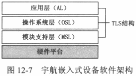 公司在接到此项任务后,进行了反复论证,提出三层栈(TLS)软件总体架构,如图12-7所示,并将软件设计工作交给了李工,要求其在3周内完成软件总体设计工作,给出总体设计方案。