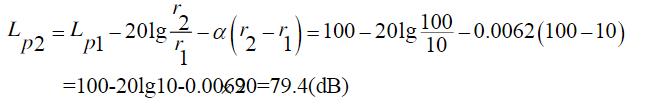在半自由声场中,一点声源辐射球面波。气温20℃、相对湿度20%。在距声源10m处,测得10000Hz的声压级为100dB,问100m处该频率的声压级为多少分贝?