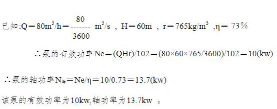 某一离心泵排液量为80m3/h,被输送介质的比重为765kg/m3,泵的扬程为60m,泵效率为73%,求该泵的有效功率和轴功率?(已知:1kw=102kg·m/s)