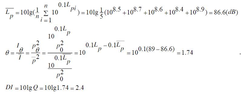 在一台机器半球辐射面上的5个测点,测得声压级如下表所示。计算第5测点的指向性指数和指向性因数。