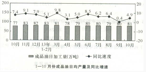 2012年1~10月份,全国原油加工量有()。