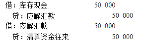 银行收到吴林交来的现金50 000元及电汇凭证,汇入行为外省同系统湘雅支行,审核凭证无误,收妥现金,办理转账。写出会计分录。