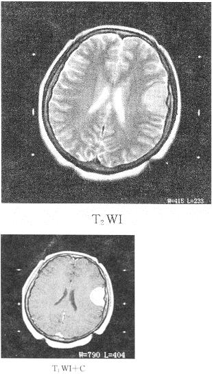 5、 患者女性,34岁,头痛数年,头颅MRI平扫及增强扫描,如图所示最可能的诊断是()。
