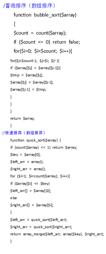 简述使用PHP描述冒泡排序和快速排序算法,对象可以是一个数组
