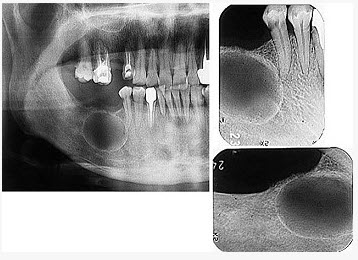图为牙骨质瘤的X线表现,关于此病描述不正