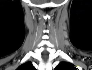 女,19岁,发现左颈部无痛性肿块2年余,可活动,CT如图所示,最可能诊断为()。
