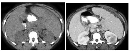 下腔静脉受肝癌侵犯和癌栓形成CT表现(