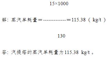 汽提塔的总进料量为130t/h,塔底的加热蒸汽用量为15t/h,试求塔-1的蒸汽单耗量为多少?