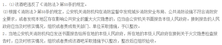 某酒吧位于一商业大厦A座正面,其报审面积为一至三层共1200m2,所在建筑物为一幢独立的3层建筑,建筑物高度为12m,使用功能为酒吧、KTV、歌舞厅,属大型的公共娱乐场所。 该酒吧在取得《消防安全检查意见书》后开业,共有员工200多人,文化部门核定容纳人数为450人。消防监督人员在一次例行的消防监督检查中发现,该酒吧存在严重消防隐患,如该酒吧三楼试水阀喷淋水压不足,遇火灾无法喷水灭火;二楼疏散过道的排烟设施不能运转,遇火灾无法排除烟雾;酒吧擅自将室内疏散楼梯改为敞开式楼梯间,且疏散楼梯的顶棚、墙面、地面均采用易燃、可燃材料装修装饰,违反消防技术标准等。 请结合上述案例。分析并回答以下问题:(共26分) 1.该酒吧违反的消防法规及具体内容有哪些? 2.针对上述情形,当地公安机关消防机构应如何处理?