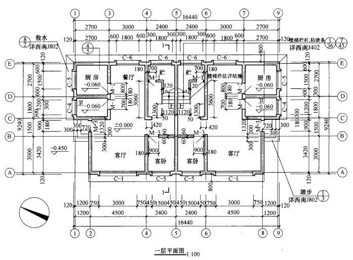 本图形为一层平面图,若此幢建筑为标准建筑,共计4层,则至少还需画出()张平面图。