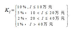 企业发放的奖金按个人完成的利润(I)提成。分段提成比例K