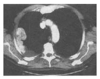 患者,男,54岁,胸痛1个月伴加重,CT如图,最可能的诊断是()。