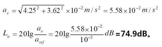 将两台机器先后开动,由某一测点测量其震荡,得知速度有效值分别为4.25g和3.62g,求两台机器同时开动时的加速度级(1g为10
