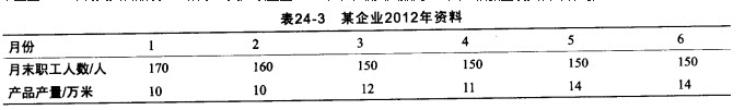 某企业2012年有关资料如表24-3所示。又知该企业2011年年末职员人数为170人。根据上表资料计算可知()。