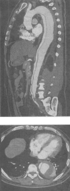 3、 患者,男,57岁,有冠心病史。突感胸背部剧痛,向腹部放射,行CT检查,如图,应诊断为()。