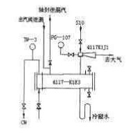 画出GT601的轴封冷凝器有关的所有进、出口管线流程,指明介质,来源,去处。