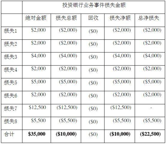 某银行的操作风险报告数字如下所示,则操作风险的损失金额最有可能以哪一个数字来认列?()