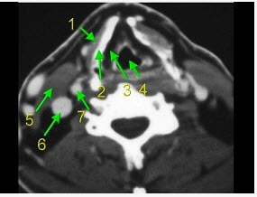 下面是一颈部CT图,其中结构标志不正确的是()。