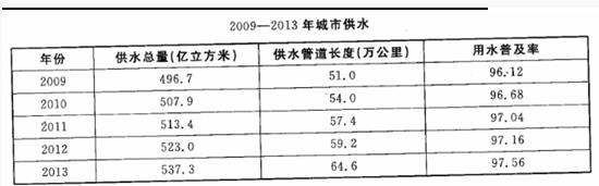 2009—2013年,城市供水总量和供水管道长度的变化趋势是()。