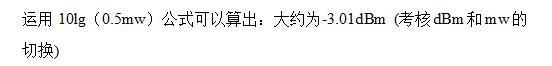 用光功率计测试Sn点(OTU的输出点)光功率,液晶屏上显示“0.5mW”,工程师按下“dBm”键,显示结果是多少?