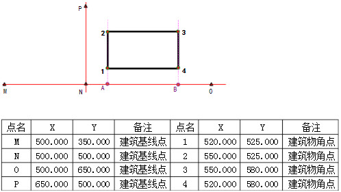 下图示意的是某建筑物的平面图,施工场地建筑基线控制点M、N、O、P的布置示意图。已知数据列于下表。项目测量专业人员决定使用普通光学经纬仪DJ2配合检定钢尺,采用直角坐标法在A、B点设站测设建筑物的四个角点。
