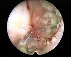 以下有三个为骨疡型中耳炎图,哪一选项为胆脂瘤性中耳炎()。