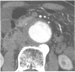 男性,70岁。行腹部CT增强扫描,发现腹主动脉异常如下图。