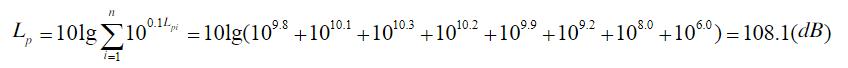 在某测点处噪声的倍频带声压级列于下表,计算该噪声的总声压级