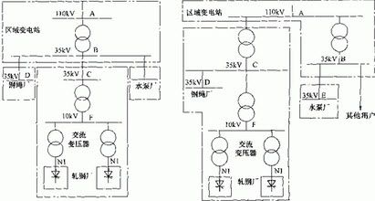 图供电方案区域变电站110kV侧最小短路容量为1500MVA,35kV母线侧最小短路容量为500MVA,35kV母线的供电设备容量为25000kVA,轧钢厂用电协议容量为15000kVA。方案1:区域变电站以35kV分别向轧钢厂、钢绳厂及水泵厂等用户供电。轧钢厂设35/10kV专用变电站,以10kV向整流变压器供电。轧钢厂共设有两台4500kVA整流变压器,各供一套6脉动三相桥式整流装置,每台整流变压器10kV侧基波电流I1=225A,7次谐波电流的有效值按工程设计法计算。方案2:由于轧钢厂及钢绳厂合并为轧钢钢绳厂,并拟自建110/35kV专用降压变电站,改为110kV由区域变电站受电,轧钢厂整流变压器运行情况同上。假定不考虑轧钢厂其他谐波源,不考虑除7次谐波以外次数谐波,也无其他会放大谐波电流的容性负荷,请分别回答下列问题: