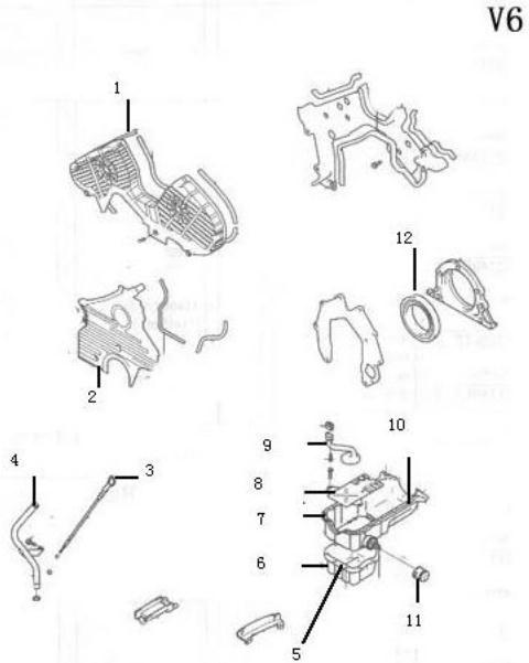 以下是发动机润滑系统结构图主要零部件,请列举每个数字指向的配件名称。