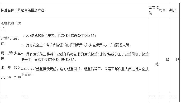 根据本项目情况,标准员编制了执行工程建设标准强制性条文落实计划表,见表l。