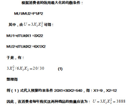 已知消费者一段时间用于商品1和商品2的收入为540元,两商品的价格分别是P1=20元,P2=30元,该消费者效用函数为U=3X1X22,其中,X1和X2分别为商品1和商品2的消费数量。 (1)该消费者达到效用最大化时商品组合是多少? (2)该消费者均衡时得到的总效用是多少?
