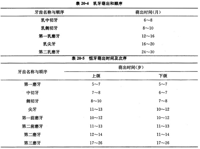 牙齿萌出时间和次序。
