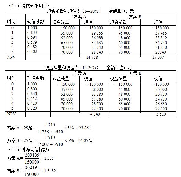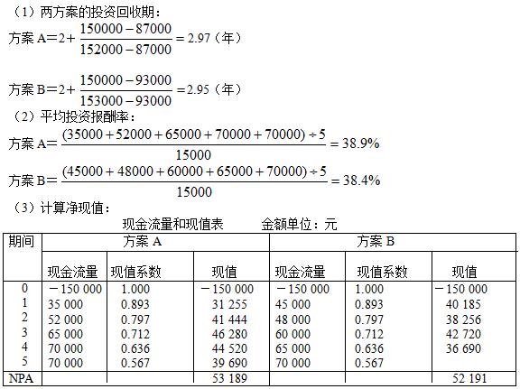 设有A、B两个投资项目,其现金流量如下表所示。(单位:元) 该企业的资金成本为12%。 计算:(1)项目投资回收期 (2)平均投资报酬率 (3)净现值 (4)内部报酬率 (5)现值指数