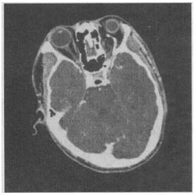 CT示颅底中线占位病变,斜坡及鞍背骨质破坏,瘤体密度不均质,可