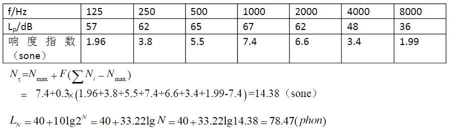 某噪声各倍频程频谱如下表所示,计算此噪声的响度级。