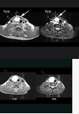 女性,46岁,右颈部无痛性包块,质软,MRI检查如图所示,请选择最可能的诊断()。