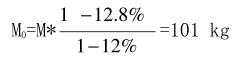 计算卷烟原料的标准重量:卷烟原料的标准含水率为12%,实际水分卷烟烟丝重量M为100kg,卷烟烟丝实际水分为12.8%,求标准水分下卷烟烟丝的重量M0