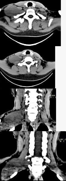 女,47岁,下颈部触及一包块约五年余,CT如图所示,最可能诊断为()。