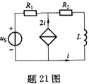 题21图所示电路中,uS(t)为单位阶跃函数,R1=R2=2Ω,L=2H。电路的时间常数是()s。